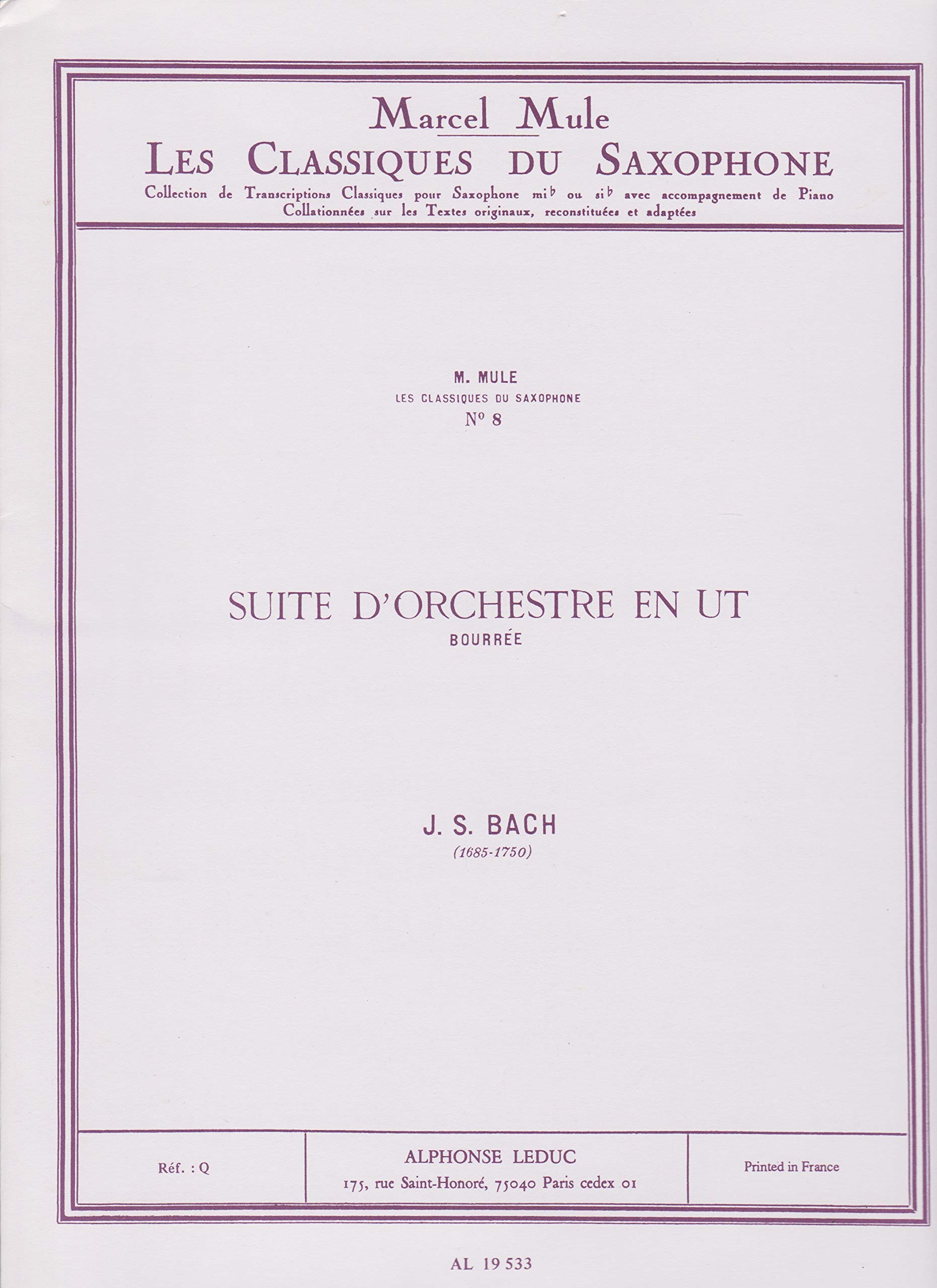 Classique Saxophone Si B No.71 Suite D'Orchestre En Ut: Bouree by Johann Sebastian Bach, Arranged by Marcel Mule
